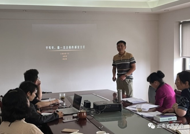 • 在全党开展党史学习教育,是党的政治生活中的一件大事。学会全体党员干部职工按照“学史明理、学史增信、学史力行”的要求,积极主动参与党史学习教育,学习党领导的奋斗史、改革发展史、创业史。2022年8月30日,在学会成立85周年之际,云南省医学会党支部组织全体党员干部职工开展“学党史,当先锋,务实干,做表率”主题党日活动。