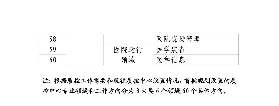 首批规划设置的质控中心包括临床、医技、管理3大类6个领域60个具体方向。